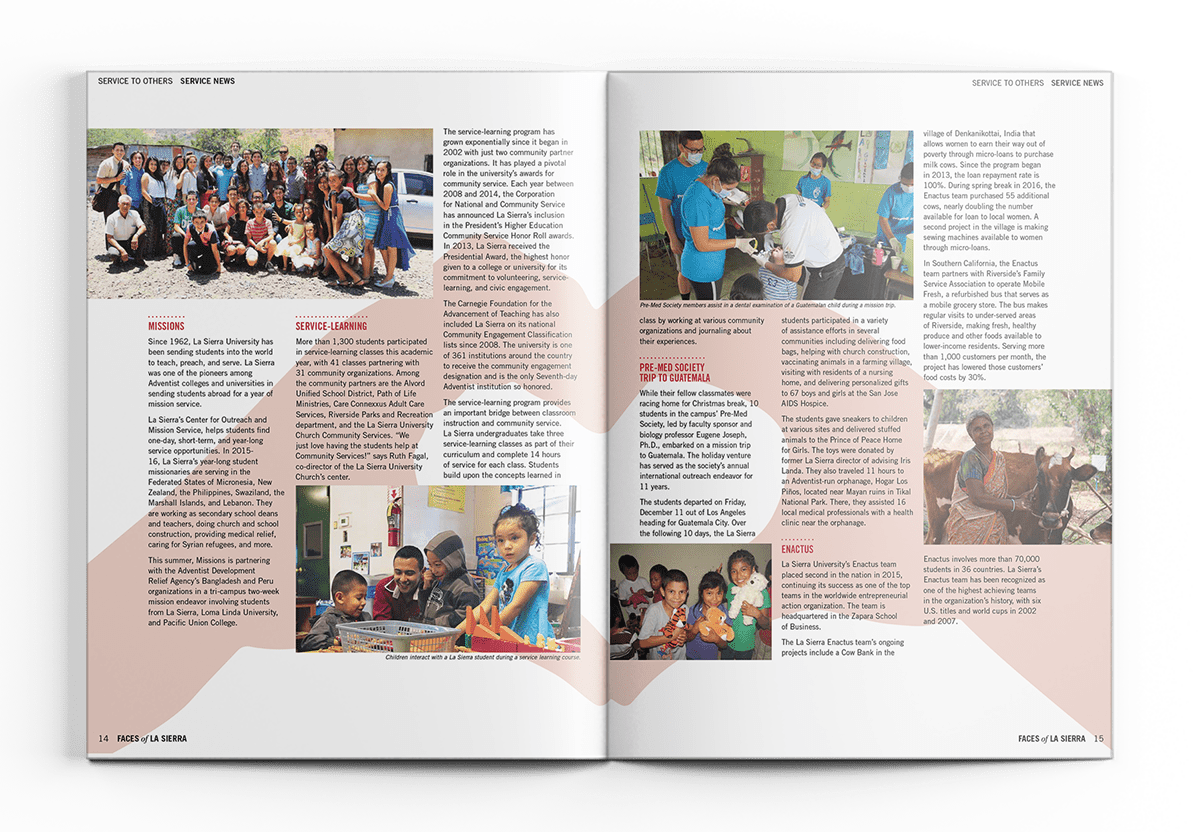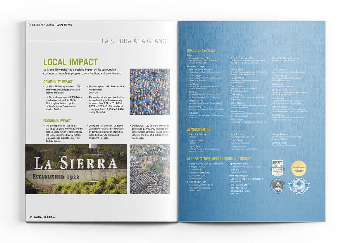 Worked with the designer to produce this biyearly report for the constituents of La Sierra University. Design by Eric Melgosa (ericmelgosa.com)